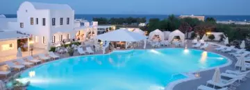 Santorini è l'isola più suggestiva delle Cicladi. Questa meraviglia si presenta ai visitatori con colori decisi e riposanti, in grado di offrire uno spettacolo naturale mozzafiato in pieno Mar Egeo. Le ripide scogliere della caldera, il mare turchese e le spiagge di sabbia di vari colori, le case bianche con i tetti a cupola blu sospese sull'abisso sono solo alcune delle caratteristiche di questa magnifica isola del Mediterraneo.Santorini infatti deve la sua peculiare conformazione e fascino all'antica eruzione di un vulcano ora sprofondato nel mare. Oltre ai romantici "affacci" dai balconi naturali che si incontrano percorrendo la caldera e visitandone i villaggi, sono presenti un enigmatico sito archeologico con resti risalenti all'epoca minoica e bellissimi vigneti di assyrtiko, un vitigno autoctono da cui si ottengono vini bianchi particolarmente rinomati: un autentico vanto per la cordiale e accogliente popolazione dell'isola.Santorini dispone di un aeroporto internazionale, è quindi facilmente raggiungibile dall’Italia anche grazie ai molti voli charter organizzati dai tour operator nel corso della stagione estiva, quando le condizioni meteo sono ideali. In alternativa, l’isola è ovviamente ben collegata tramite traghetto ai principali porti dell'Egeo. Lo spettacolo del tramonto di Santorini, quando lo scintillio oro e arancione dei raggi del sole si riflette sulle pareti della caldera vulcanica e sulle case che vi sono abbarbicate, vi lascerà letteralmente senza fiato.